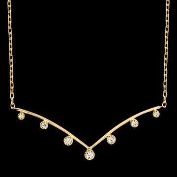 Seven diamonds delicately suspended along a graceful gold curve.A finely crafted necklace that balances modern elegance with a subtle, radiant sparkle.