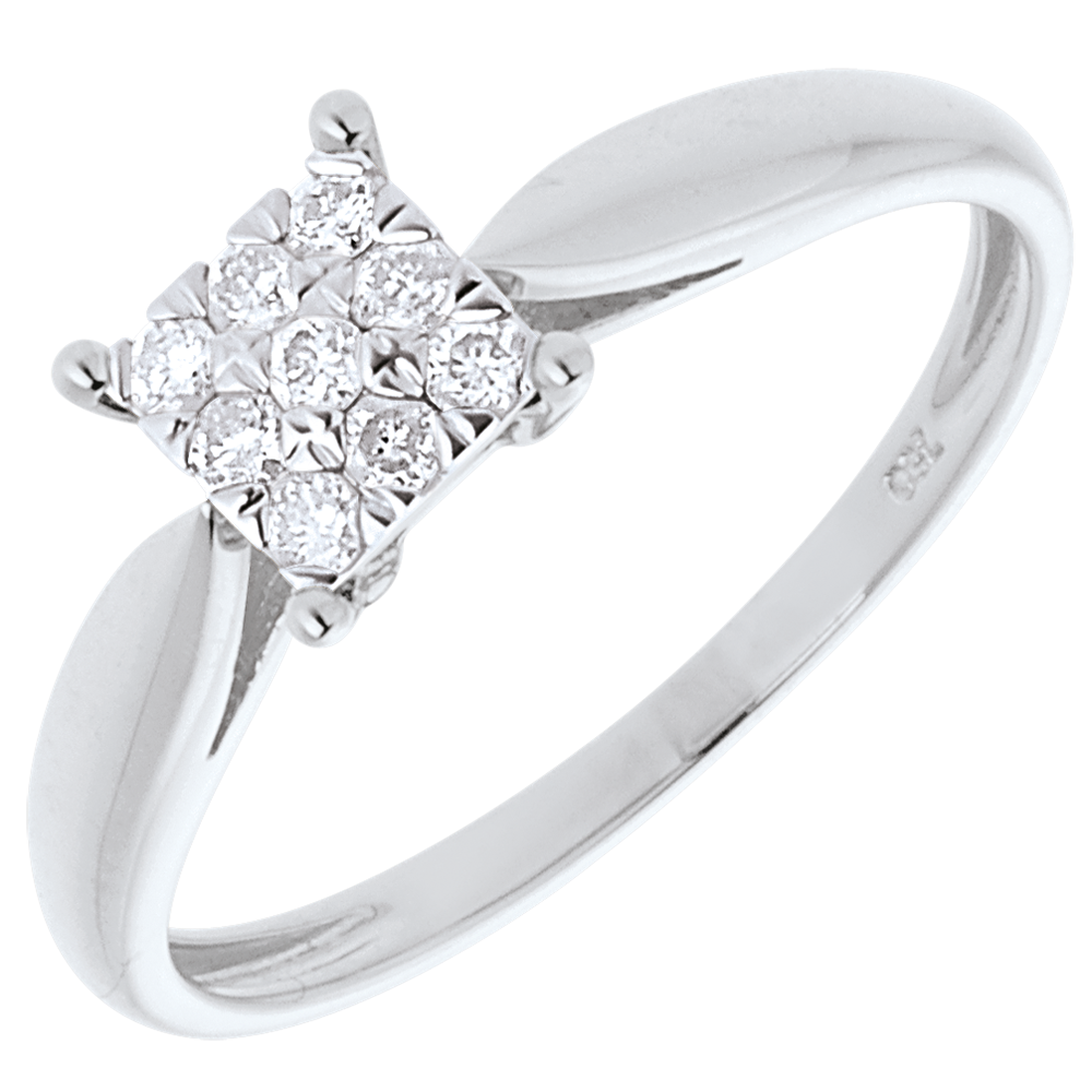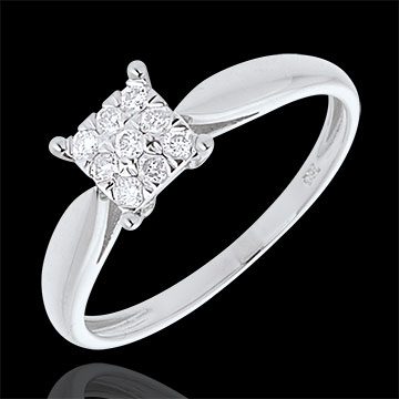 Elegance ring white gold square paved - 9diamonds