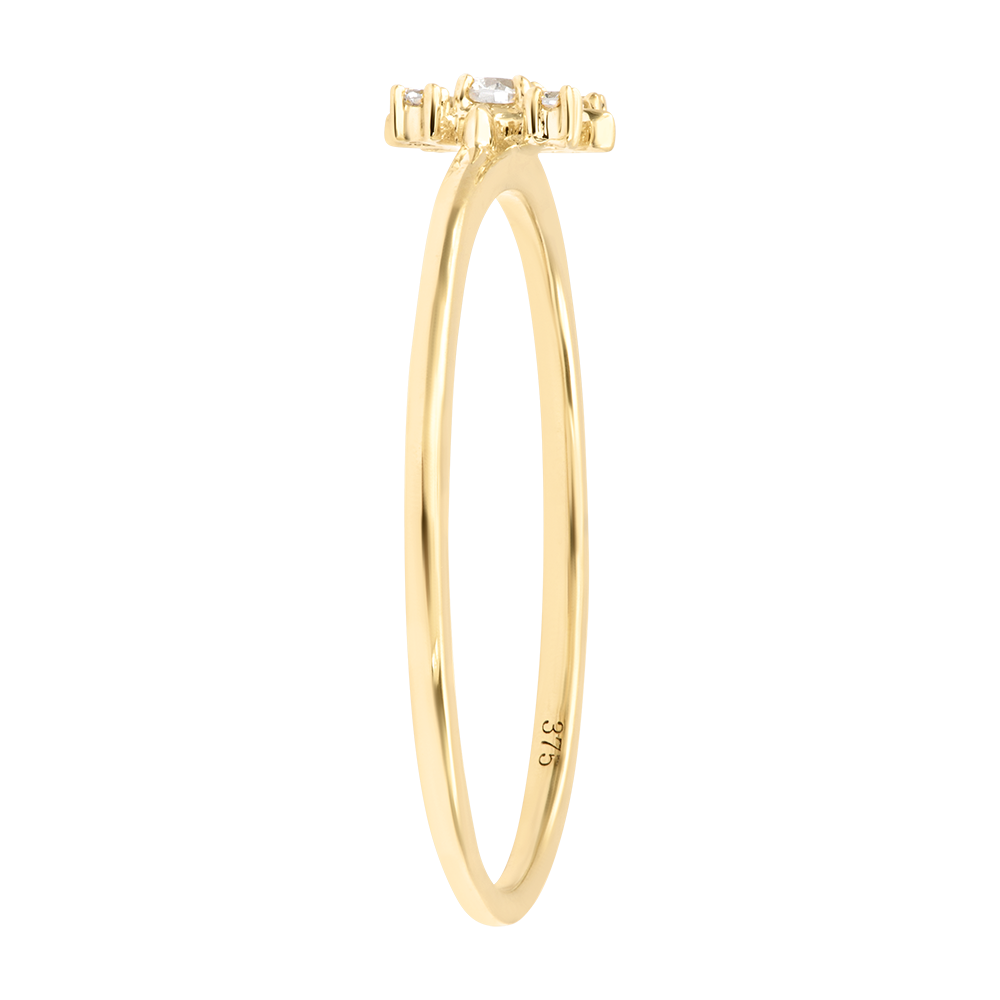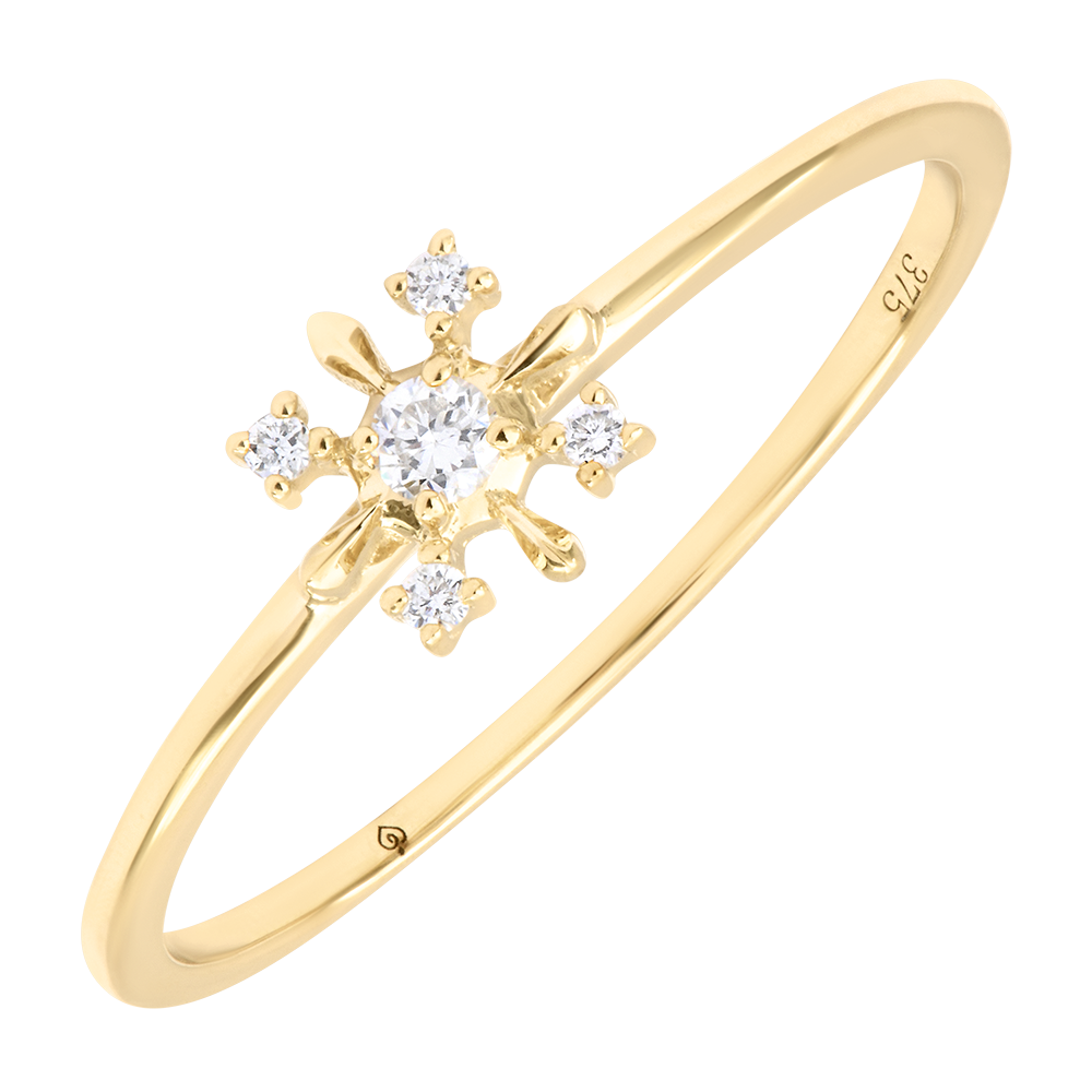 This delicate ring crafted in 9ct yellow gold features five lab-grown diamonds arranged in a refined crystalline star pattern.