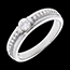- 0.22 carat center diamond surrounded by 17 pavé diamonds for harmonious brilliance