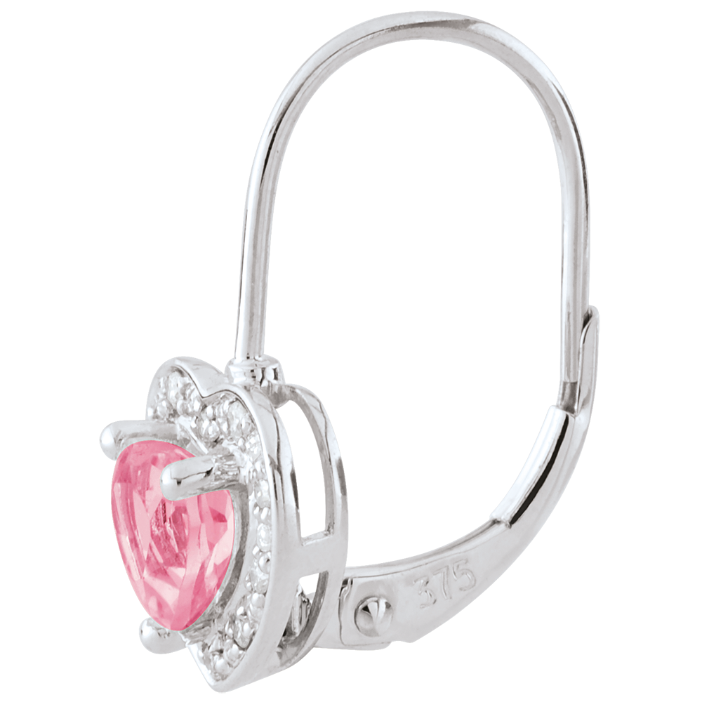 A precious pair of hearts in white gold and encrusted with diamonds is the setting for lavish pink tourmaline. Sleeper model.