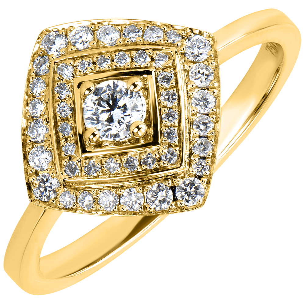 Destiny Engagement Ring - Double Geometric Halo - yellow gold 18 carats and diamonds