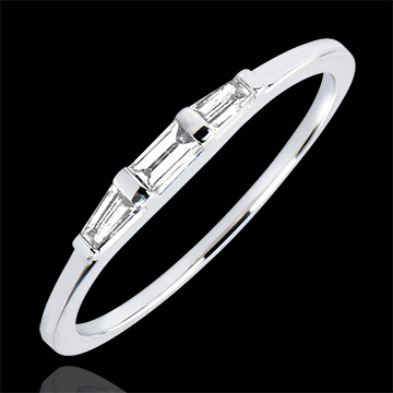 A pure baguette diamond trilogy for a classic accompanied solitaire model.