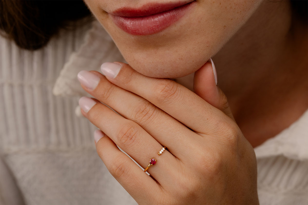 Explore our available designs that you can personalise: choose the gemstone and the setting to create a unique piece of jewellery, tailored to your tastes.