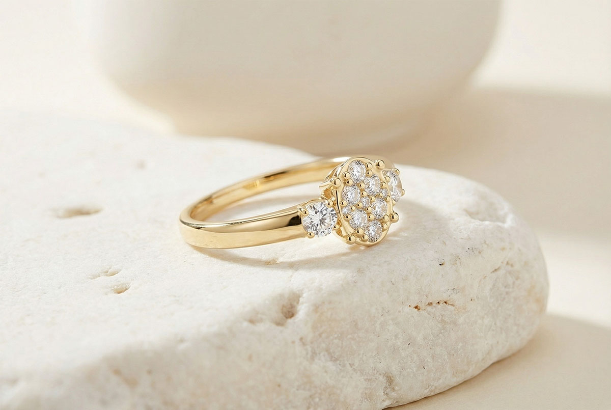 LEARN MOREA cluster is a composition of small diamonds brought together to create the effect of a larger stone, with multiplied sparkle and an excellent value-for-money ratio.
