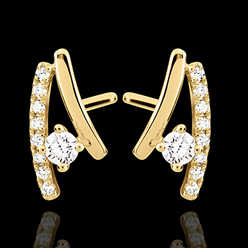 Two valuable gold and diamond bands surround a diamond. A pair of elegant, original and discreet studs.