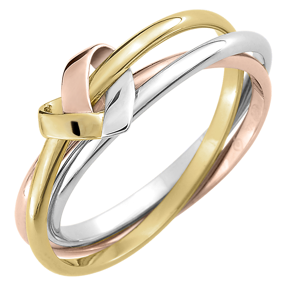 The heart, an icon of jewelery, revisited by Edenly in an origami version where the 3 golds enlace with originality and elegance. A trilogy ring symbolic of a declined mark composed of 3 gold rings, An identity motif of the brand declined trilogy ring composed of 3 rings yellow gold, white gold and pink gold. Three golds (18K Gold = 750/-): 3.8 g. More dimensions