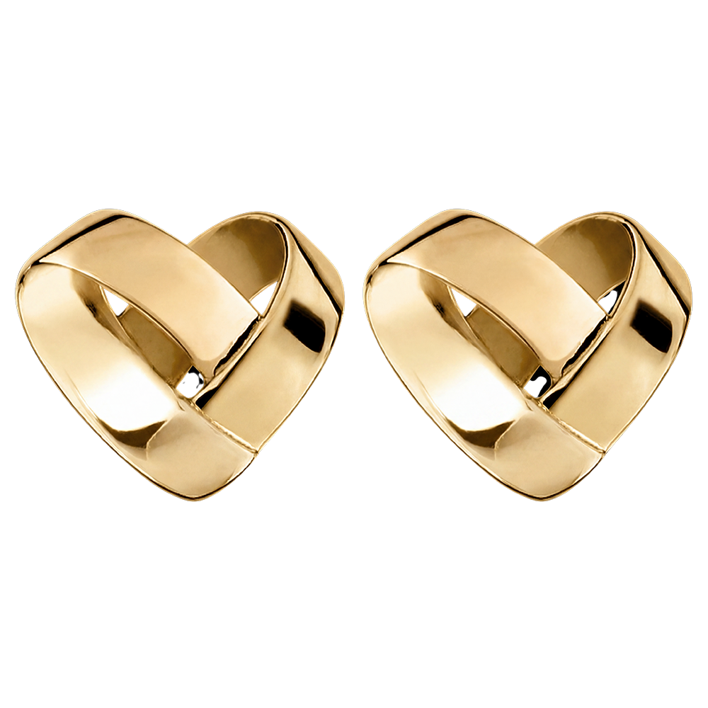 The heart, a timeless icon of jewellery, reimagined by Edenly as an origami motif—yellow gold ribbons entwined with a distinctive, graceful touch. A pair of stud earrings with delicate lines and unmistakable femininity.