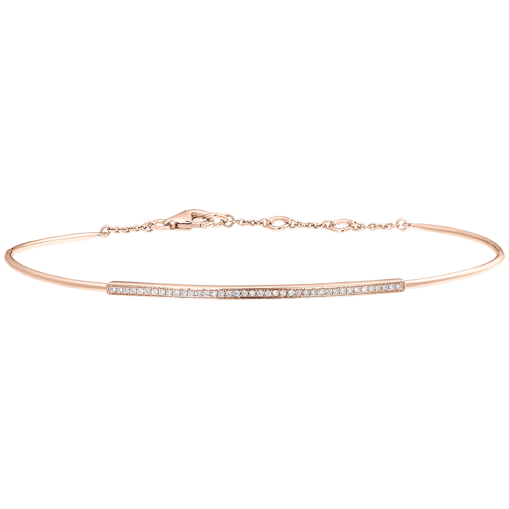 A delicate pink gold bangle set with 40 precious diamonds to light up your wrist. Bracelet with chain and clasp for everyday wear.