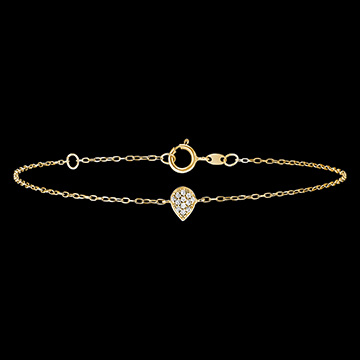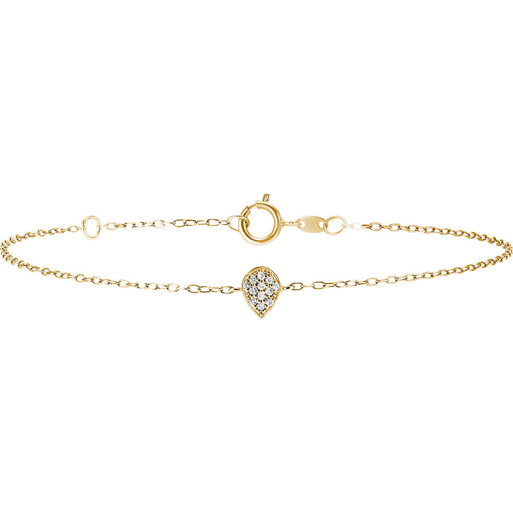A dainty diamond-studded drop hanging from a yellow gold chain bracelet. A simple yet emotionally resonant design. Adjustable length strap: 18cm and 16cm.