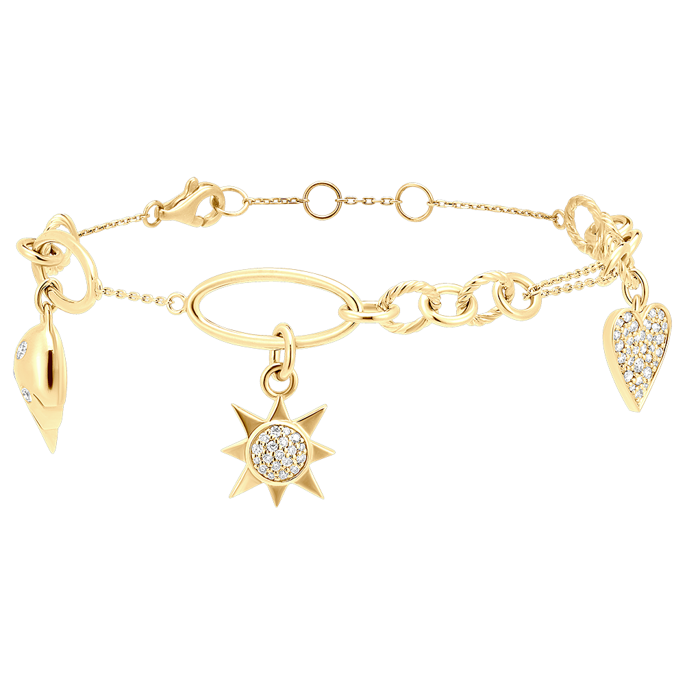 The 55 white diamonds, graded G VS1 and totaling 0.45 carats, provide a subtle and elegant sparkle to this chain bracelet. This talisman embodies the tenderness of the heart and the brilliance of the stars.