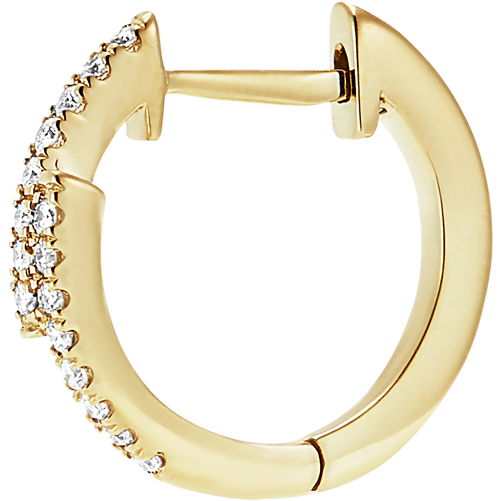 A delicate pair of asymmetrical, semi-pavé hoop earrings for a touch of sparkle and rock.