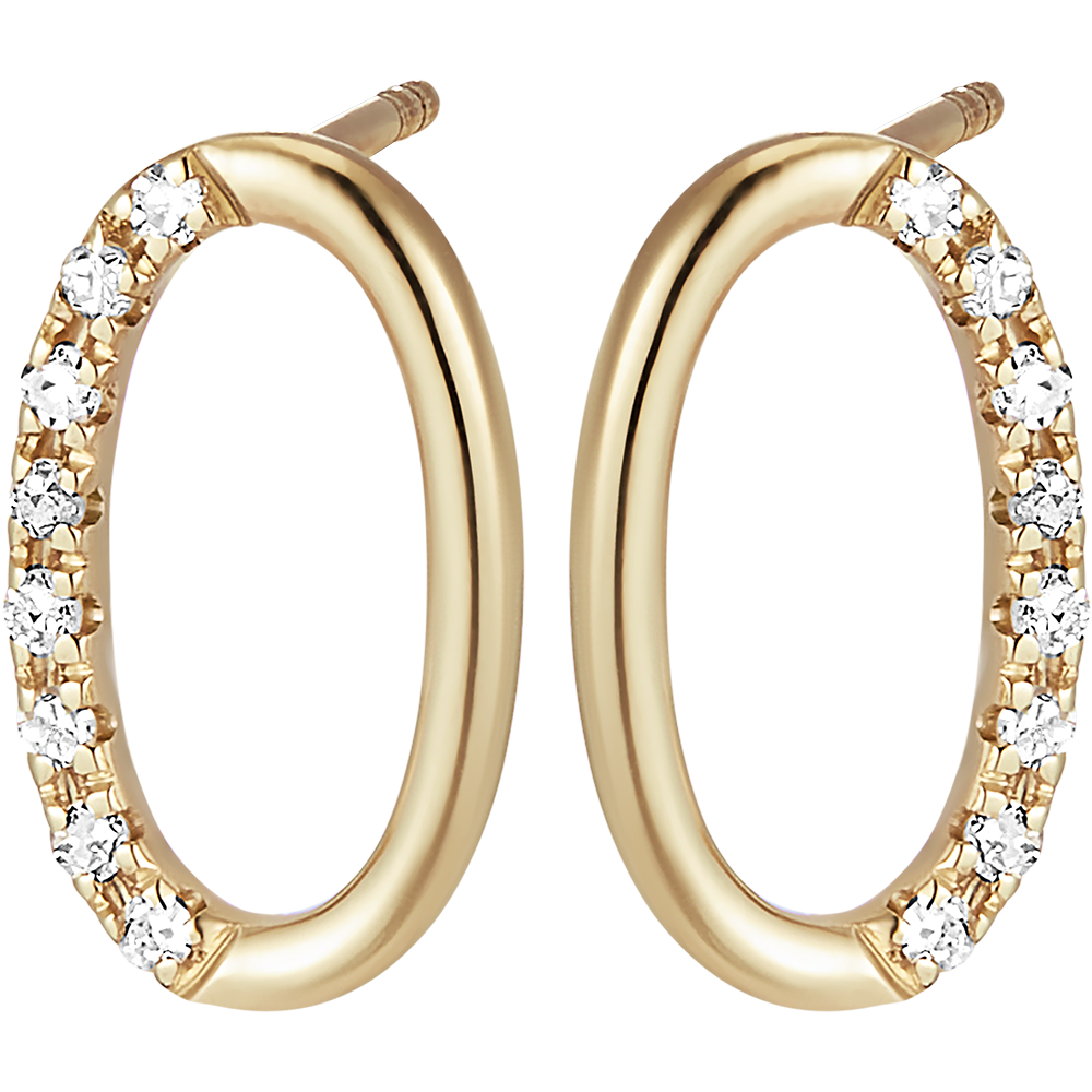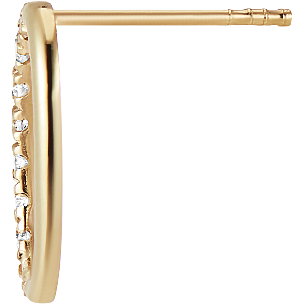 A pair of yellow gold stud earrings featuring an oval shape, with half of it delicately paved with diamonds. A pure design that connects with nature and emotions.