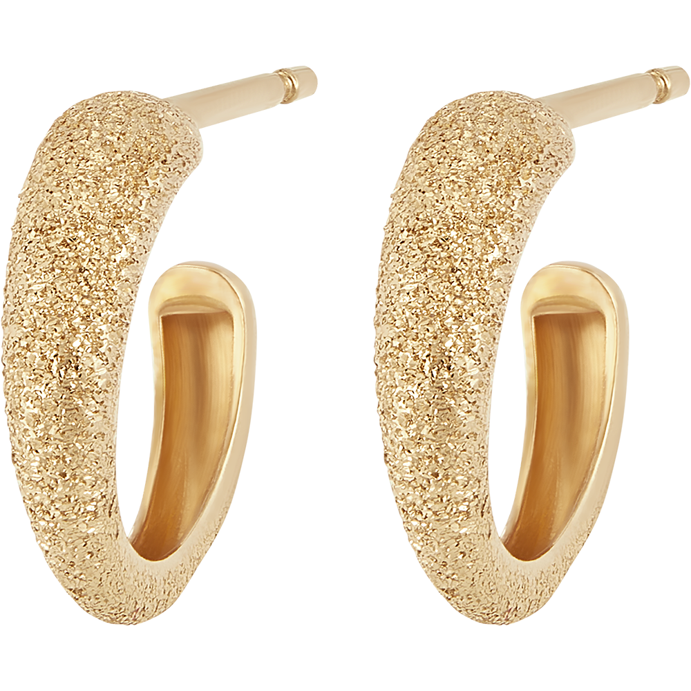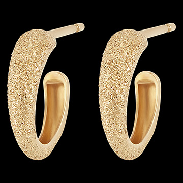 A pair of textured yellow gold hoop earrings - diamond-like effect for a truly modern look.