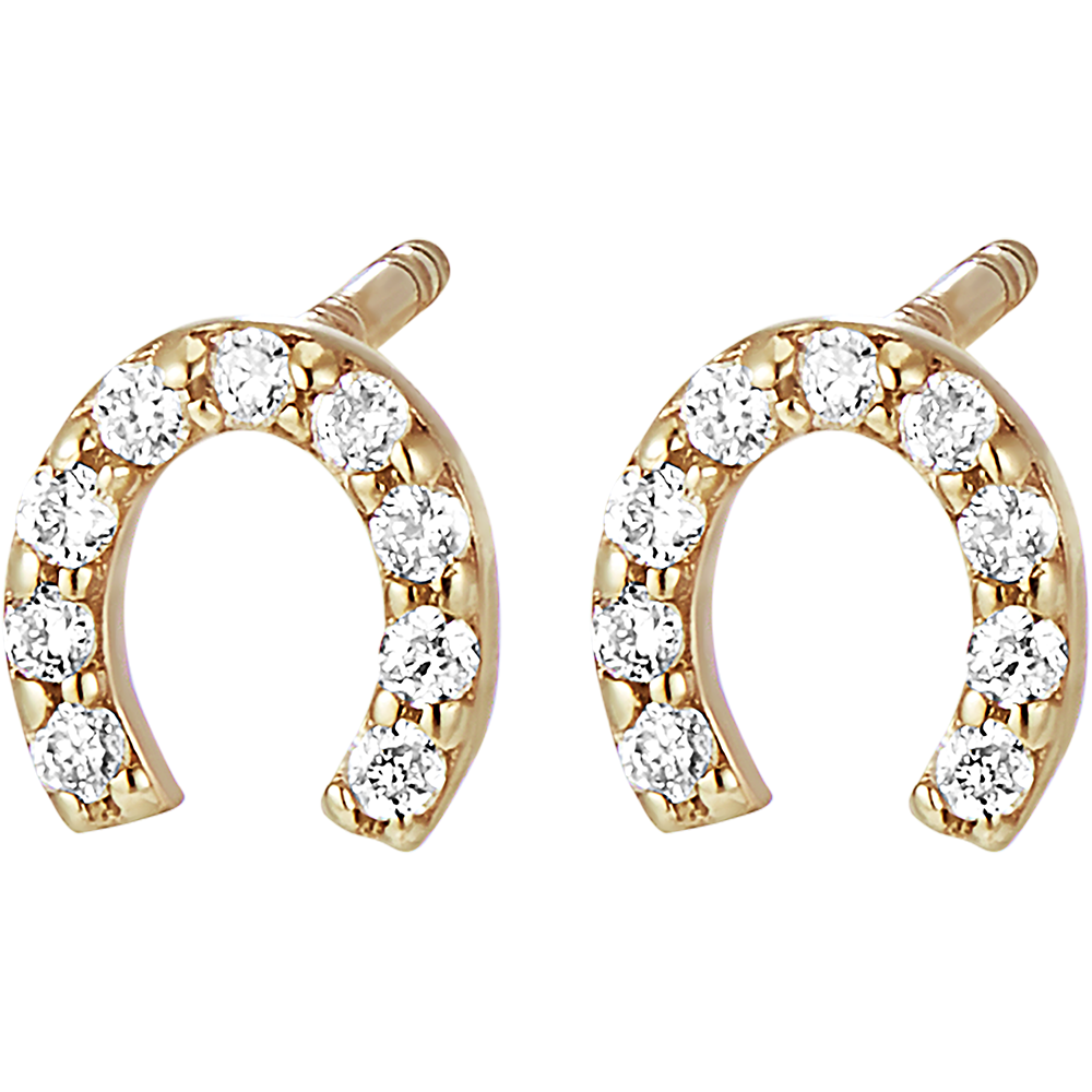 A pair of lucky horseshoe-shaped stud earrings set with 18 diamonds.…