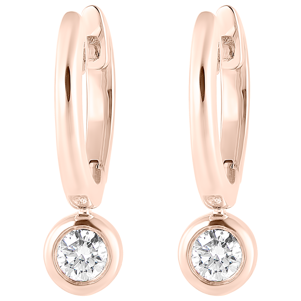 A pair of pink gold hoop earrings with a delicate sparkling diamond charm for an irrisdescent look.