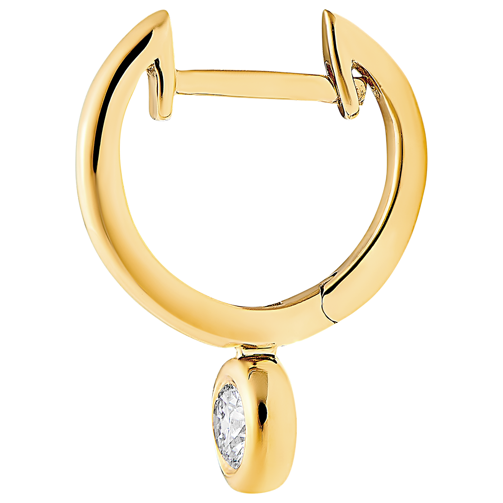 A pair of yellow gold hoop earrings with a delicate sparkling diamond charm for an irrisdescent look.