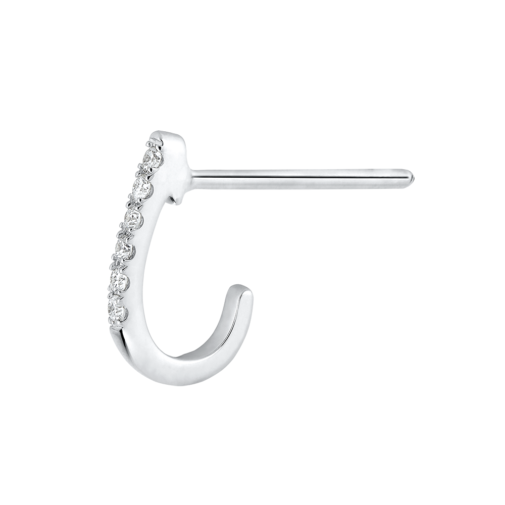 This pair of white gold semi hoops delicately paved with diamonds glorify the ears.