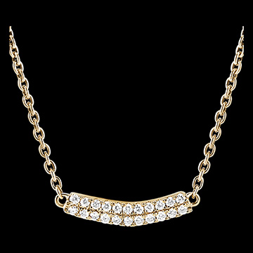 An elegant and timeless necklace featuring a double yellow gold bar set with 22 diamonds.