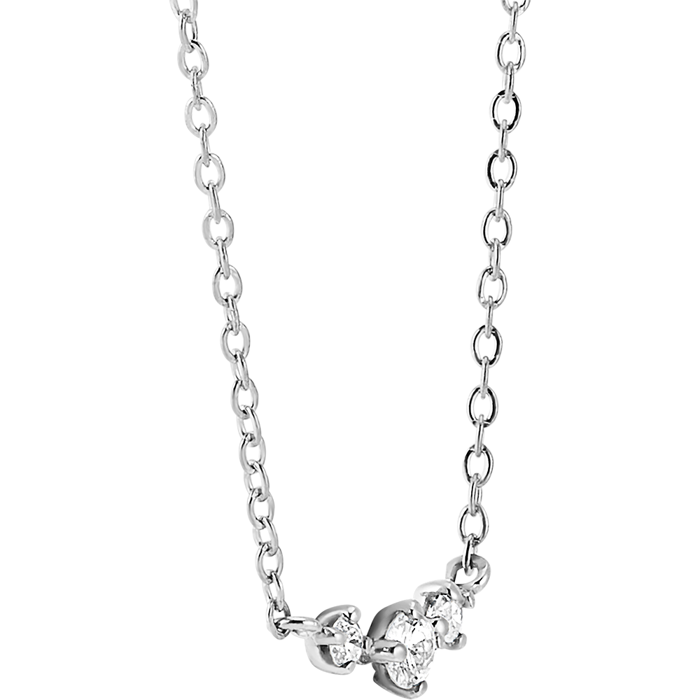 A white gold necklace set with 3 diamonds - like a constellation. It's a mix of timeless and modern style.