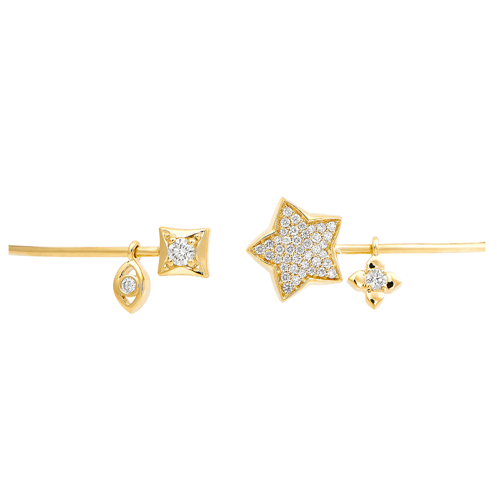 Freshness Open Bangle Bracelet - Lucky Star - yellow gold 18 carats and diamonds