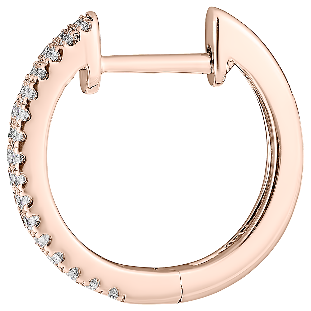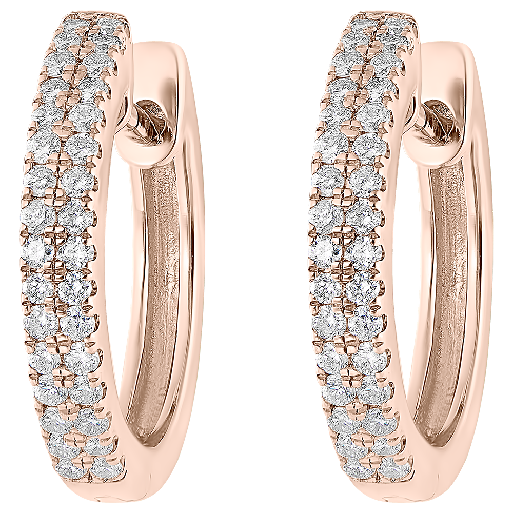 A pair ofpink gold semi-paved hoop earrings with double diamonds row for a spark of elegance.