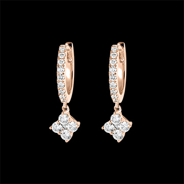A pair of pink gold semi-paved hoops with a five diamond set charm. A precious and modern touch. Charm : 5.95mm long, 3.20mm wide.
