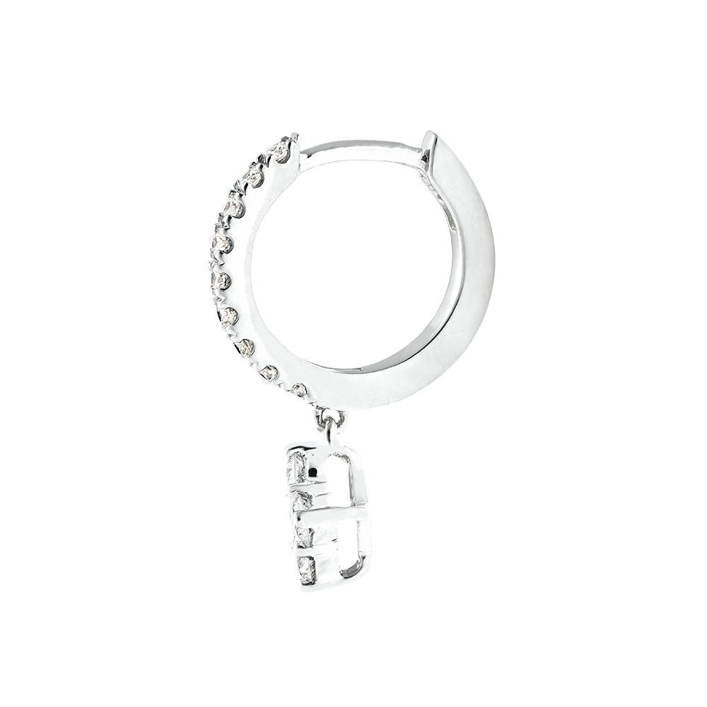 A pair of white gold semi-paved hoops with a five diamond set charm. A precious and modern touch. Charm : 5.95mm long, 3.20mm wide.