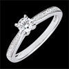 A diamond solitaire is held by 8 claws on a refined diamond-studded mount.