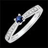 Garlane Solitaire Ring set with 4 claws - 0.14 carat sapphire and diamonds - white gold 9 carats
