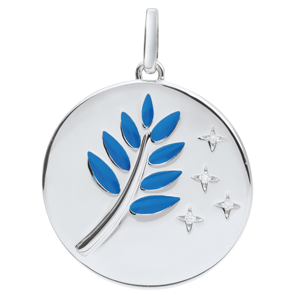 Blue Lacquer Olive Branch Medal with 4 diamonds - 18 carats