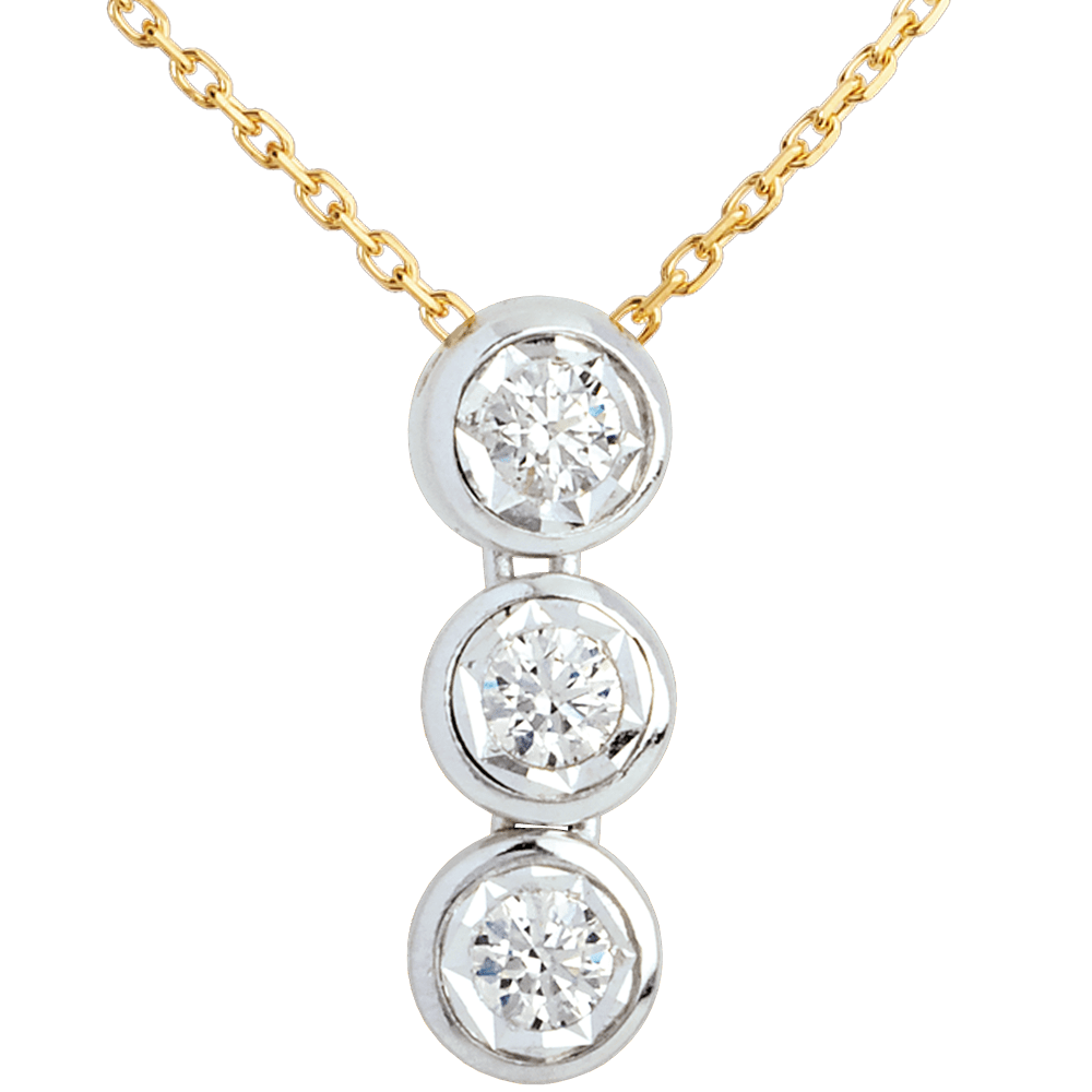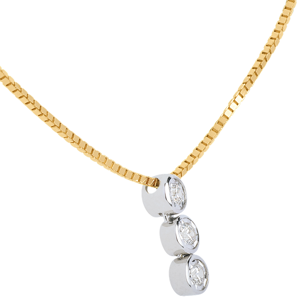Hanging trilogy necklace yellow gold-white gold - 3 diamonds