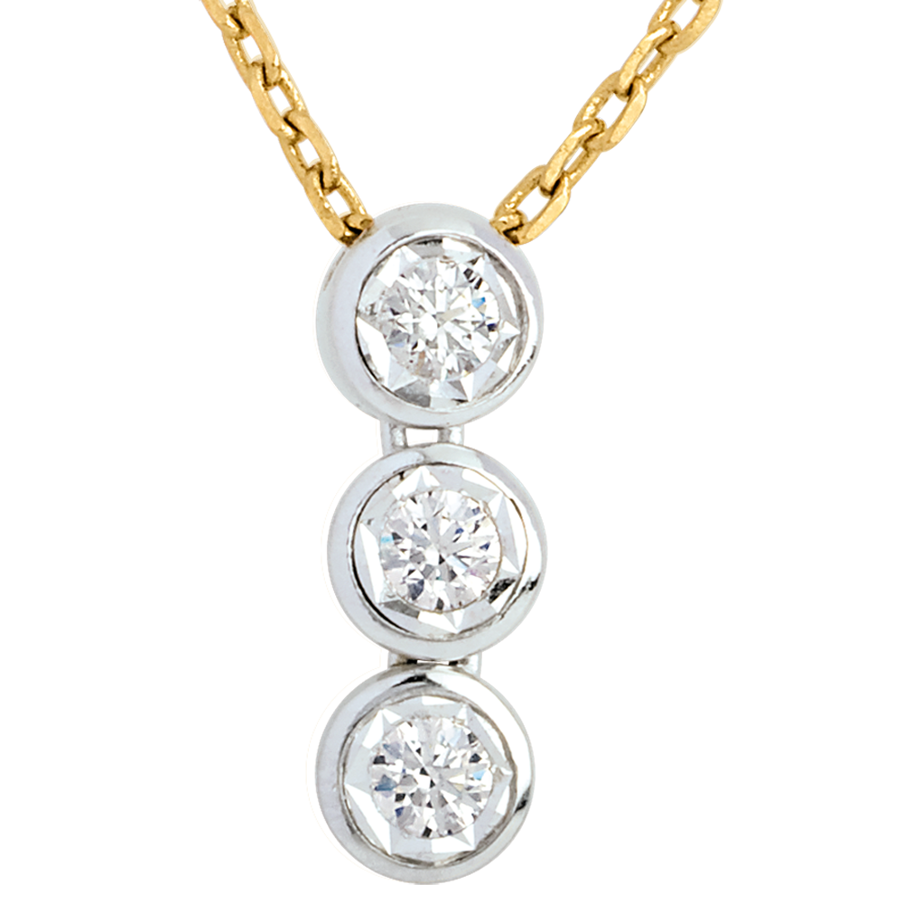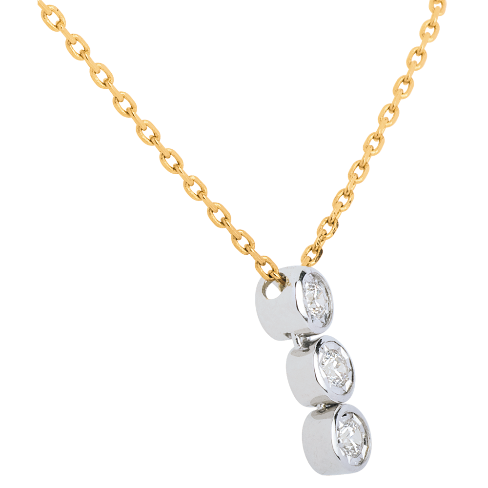 Hanging trilogy necklace yellow gold-white gold - 3 diamonds