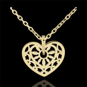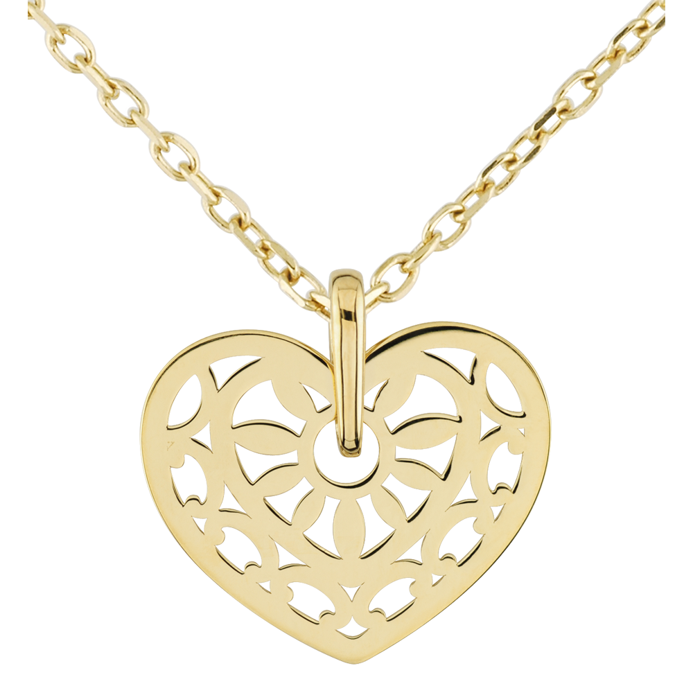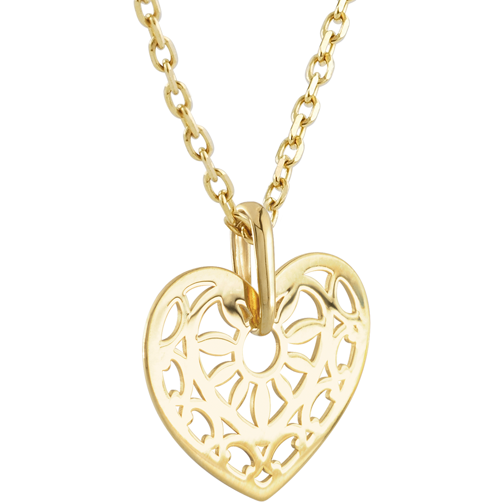 This finely detailed pendant in 9 carat yellow gold features a romantic openwork heart design.