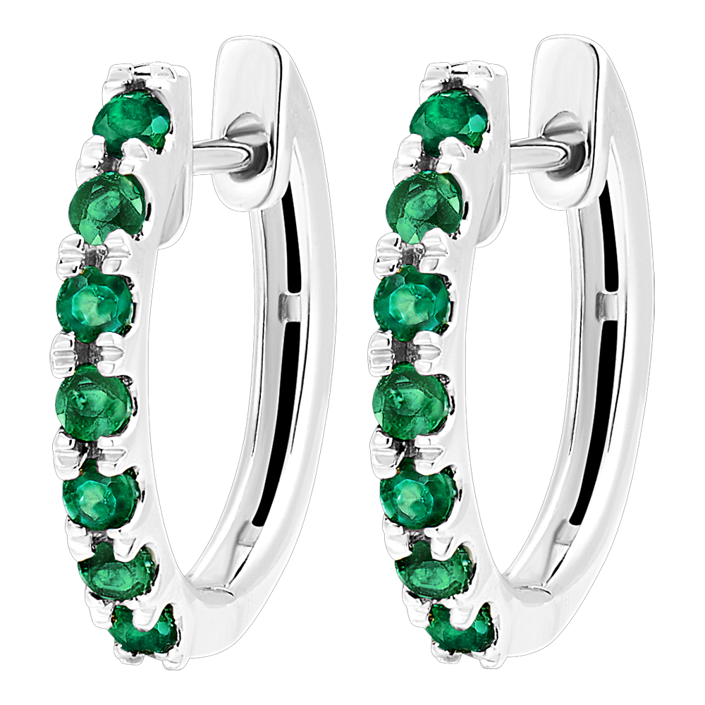 Customer reviews highlight the quality and beauty of these white gold hoop earrings semi-paved with emeralds. They appreciate the lightweight feel, elegant design, and vibrant sparkle, perfect for gifting or everyday wear.
