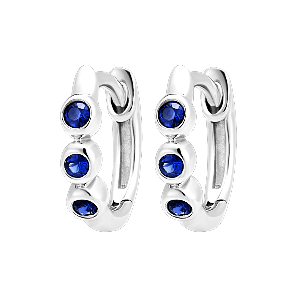 These Trio Sapphire hoop earrings in 18K white gold showcase a vivid play of color with six blue sapphires of Very Good quality.