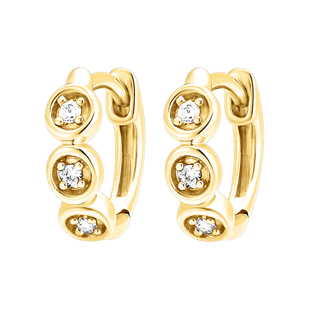These Trio diamond hoop earrings in yellow gold offer a bright and captivating sparkle.