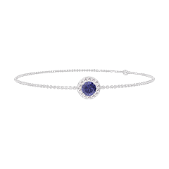 « L'ATELIER » NO. 200588Bracelet White gold 9 carats - Blue Sapphire round 0.3 Carats - Halo Diamond white - Chain Rolo 4.7 (3)
