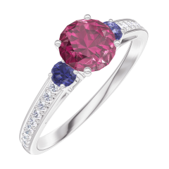 « L'ATELIER » NO. 163068Ring White gold 9 carats - Ruby Round 0.5 Carats - Ring settings Blue Sapphire - Setting Diamond white 4.8 (21)