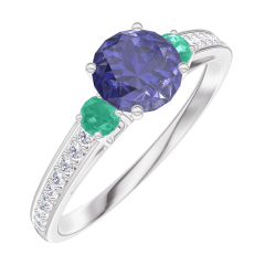 « L'ATELIER » NO. 163687Ring White gold 18 carats - Blue Sapphire round 0.5 Carats - Ring settings Emerald - Setting Diamond white 4.5 (16)