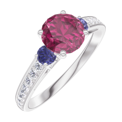 « L'ATELIER » NO. 165467Ring White gold 18 carats - Ruby Round 0.7 Carats - Ring settings Blue Sapphire - Setting Diamond white 4.9 (7)