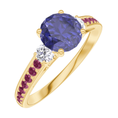 « L'ATELIER » NO. 166030Ring Yellow gold 9 carats - Blue Sapphire round 0.7 Carats - Ring settings Diamond white - Setting Ruby 4.9 (7)