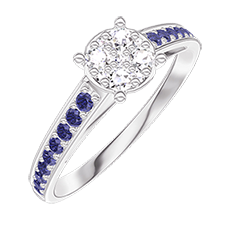 « L'ATELIER » NO. 210216Ring White gold 9 carats - Cluster of natural diamonds round equivalent 0.7 - Setting Blue Sapphire 4.9 (7)