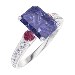 « L'ATELIER » NO. 168647Ring White gold 18 carats - Blue Sapphire Baguette 1 Carats - Ring settings Ruby - Setting Diamond white 4.4 (8)