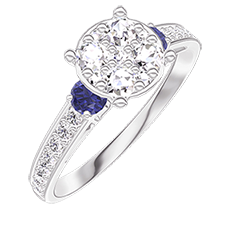 « L'ATELIER » NO. 210867Ring White gold 18 carats - Cluster of natural diamonds round equivalent 1 - Ring settings Blue Sapphire - Setting Diamond white 4.7 (15)