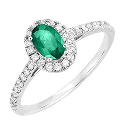 « L'ATELIER » NO. 1007079Ring White gold 9 carats - Synthetic emerald Oval 0.5 Carats - Halo Lab-grown diamond - Setting Lab-grown diamond 4.5 (12)