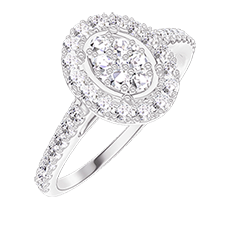 « L'ATELIER » NO. 211551Ring White gold 18 carats - Cluster of natural diamonds Oval equivalent 0.5 - Halo Diamond white - Setting Diamond white 4.5 (12)