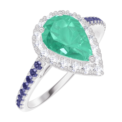 « L'ATELIER » NO. 171072Ring White gold 9 carats - Emerald Pear 0.5 Carats - Halo Diamond white - Setting Blue Sapphire 4.9 (14)