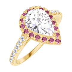 « L'ATELIER » NO. 190214Ring Yellow gold 9 carats - Lab-grown diamond Pear 0.5 Carats - Halo Ruby - Setting Lab-grown diamond 5 (14)