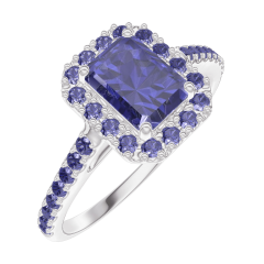 « L'ATELIER » NO. 170719Ring White gold 18 carats - Blue Sapphire Baguette 0.5 Carats - Halo Blue Sapphire - Setting Blue Sapphire 4.7 (46)